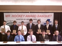 The Mr. Hockey Award, given each year to the outstanding senior hockey player in the state of Minnesota, is selected by a panel of judges, including National Hockey League scouts, Division I coaches and selected media members from around the state. Other finalists for this year’s award were: Josh Archibald (Brainerd High School),Ben Bahe (Hill-Murray),Jon Brodzinski (Blaine High School),Tony Cameranesi (Wayzata High School),Patrick Daly (Benilde-St. Margaret’s),Max Everson (Edina High School),Steven Fogarty (Edina High School),Garrett Hendrickson (Virginia High School) and Joseph LaBate (Academy of Holy Angels).
