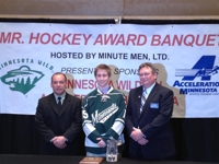 SAINT PAUL/MINNEAPOLIS, Minn. –The Minnesota Minute Men announced today that forward Kyle Rau from Eden Prairie High School is the recipient of the 27th Annual Mr. Hockey Award, given to the outstanding senior boy’s high school hockey player in the state of Minnesota. Alex Lyon from Lake of the Woods High School received The Frank Brimsek Award, in recognition of Minnesota’s top senior goaltender. Mark DeCenzo (Hibbing High School), Bruce Plante (Hermantown High School) and Tom Sager (White Bear Lake High School) received The John Mariucci Award, given to the Class A and Class AA high school coaches of the year. Jeff Whisler (Hill Murray/Mahtomedi) received The Cliff Thompson Award, presented to the “Old Timer Coach” of the year.